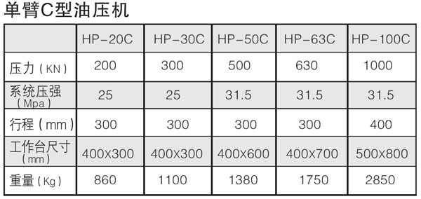 单臂C型油压机 OPEN SIDE “C” TYPE HYDRAULIC PRESS